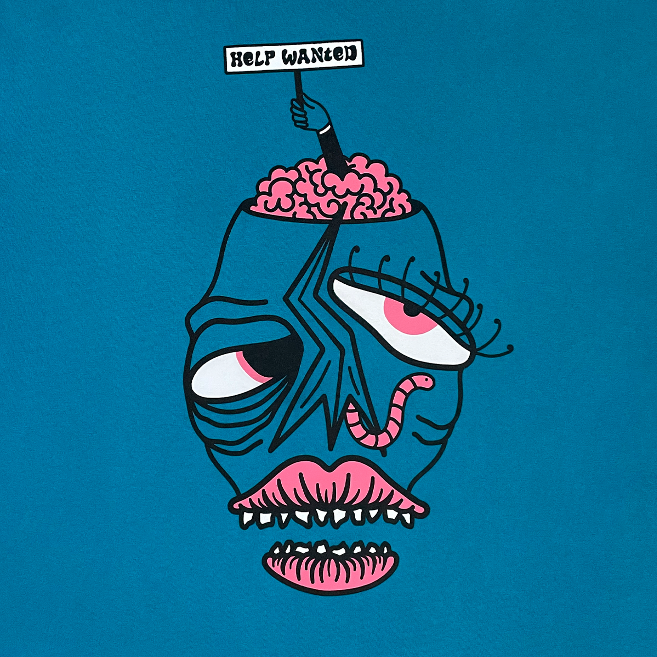 This teal heavyweight tee features a higher neckline and is pre washed giving a vintage/broken in feel. Virtually shrink free. 100% cotton. Screen printed in Los Angeles by HOUND.